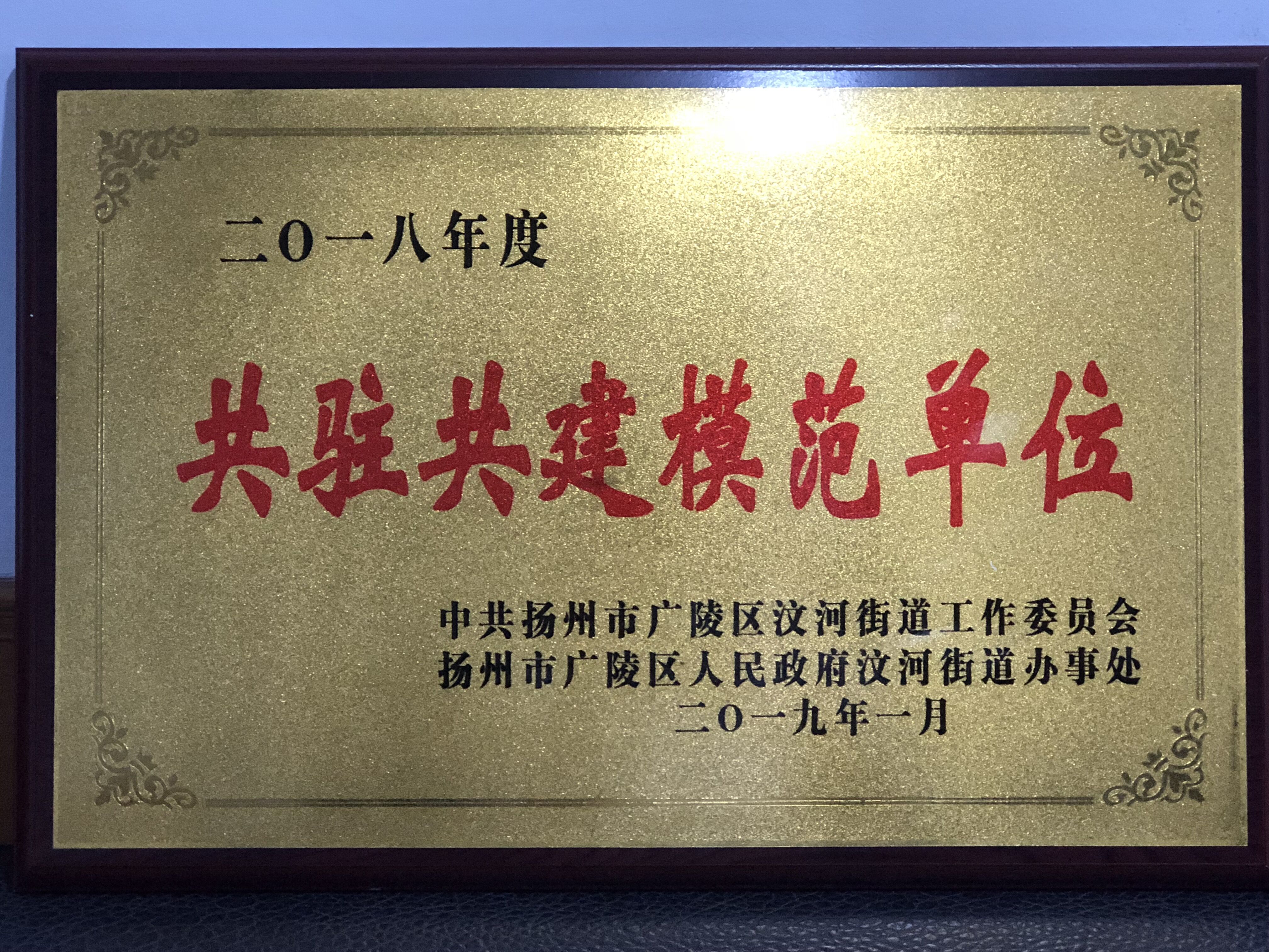 1月28日,揚子江置業(yè)公司被揚州市廣陵區(qū)人民政府汶河街道授予“2018年度共駐共建模范單位”榮譽稱號。 2019年置業(yè)公司將一如既往地積極參與、全力支持社區(qū)各項工作,共同做好共駐共建工作,以實際行動奉獻愛心、傳遞溫暖,向社會傳播更多的正能量。(置業(yè)公司) |