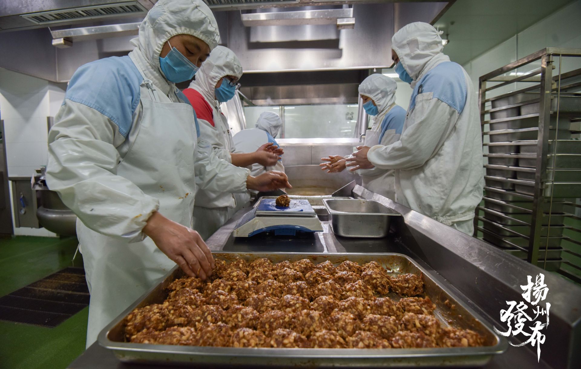 由于前方烹飪條件有限,后方需要把魚圓、肉圓、調(diào)理蝦仁等做成半成品,把大排、雞翅、牛筋、牛腩以及紅燒類的雞鵝鴨做成成品,但是揚(yáng)州冶春食品公司都是標(biāo)準(zhǔn)化生產(chǎn)線,每一個生產(chǎn)環(huán)節(jié)都有數(shù)據(jù)錄入系統(tǒng),而這些半成品、成品都是非標(biāo)準(zhǔn)化制作,怎么辦?公司決定先手工制作,品控部門全程監(jiān)控,最后送檢、留樣,所有產(chǎn)品做到可“溯源”?!百|(zhì)量一刻不能放松,我們要讓前方將士吃到世界美食之都揚(yáng)州最放心的美食。”楊朝暉說。