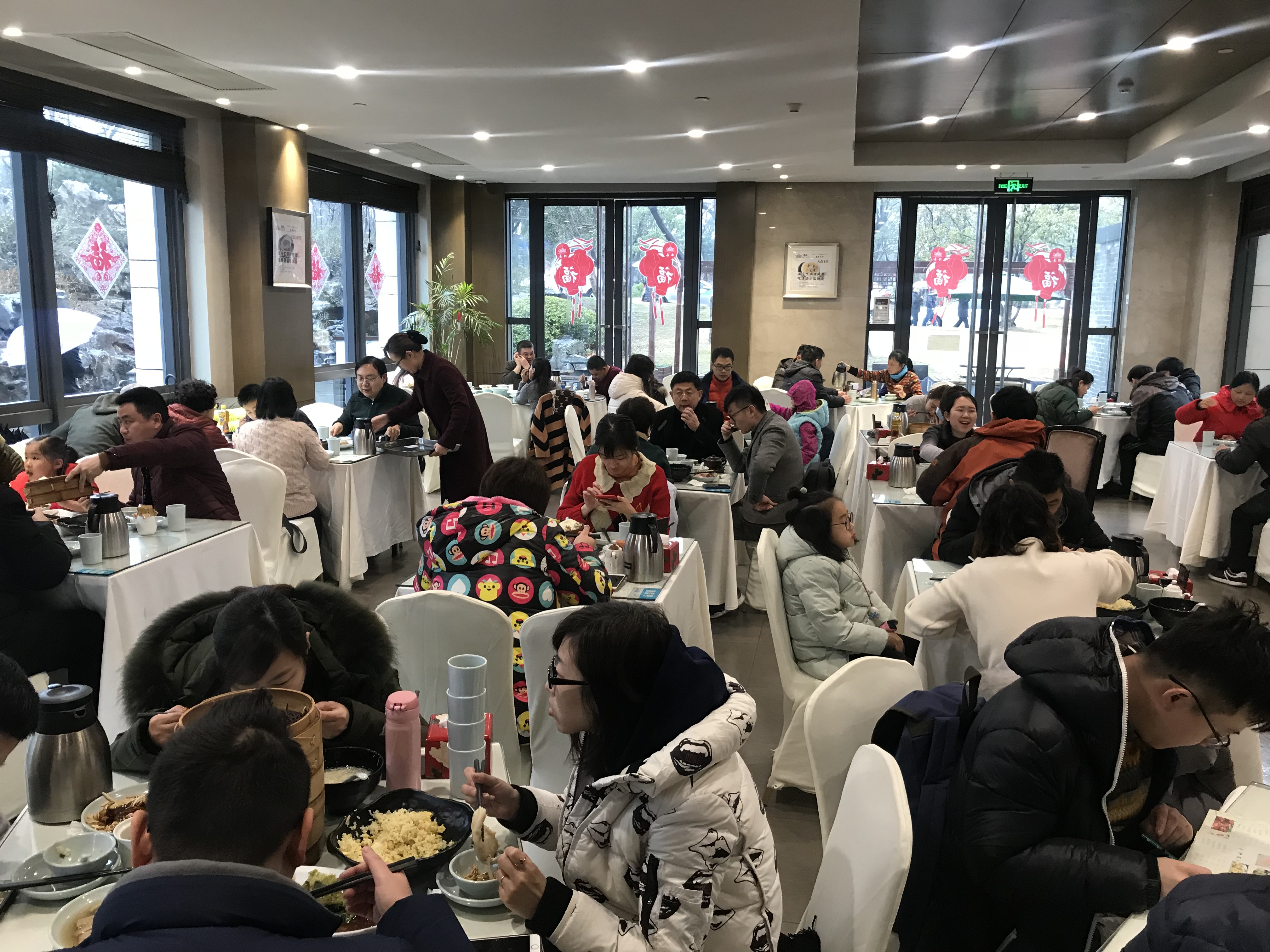冶春“早行”人 莫道君行早,更有早行人。春節(jié)期間,百年冶春各店爆滿,每天一大早,就坐滿了慕名而來的客人。 古色古香的建筑、悠悠瀲滟的河水……對了,當然還有揚州非物質(zhì)民俗文化——冶春風情文化,在冶春園內(nèi)傾情展現(xiàn),讓春節(jié)氣氛更加濃烈。邀親朋好友對坐:點一壺清茶,嘗一口冶春細點,領略揚州傳統(tǒng)的民風民俗,暢談新年美好的愿景;景在眼前,味在口中,幸福也便留在心里了。 有這么一群人,他們“更早”。