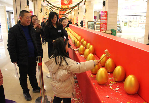 此次活動,商城集結了四百家店鋪、千余個家居建材品牌、上萬件商品,組成了開年促銷的強大陣容?;顒悠陂g,市場內(nèi)張燈結彩,宣傳立體模型、展架遍布,內(nèi)容上也體現(xiàn)了推陳出新。顧客在商城購物,不僅能參加特價商品淘寶、掃碼就送禮、射飛鏢贏禮品等超值活動,同時每消費1000元即可參加趣味“砸金蛋”活動,中獎率百分百,獎品豐富,既有價值不等的“冶春”超市卡和食品系列,也有各類精美禮品,為了帶給顧客更多的驚喜,商城每天都拿出純金狗年金條一塊作為最高大獎。實惠的價格,多樣的選擇,精彩紛呈的活動吸引了大量的人氣,短短四天,商城顧客絡繹不絕,顧客共砸了2000多只金蛋,市場成交額上千萬元,達到了預期效果。