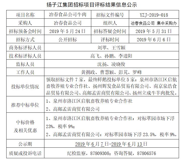 備注:投標(biāo)人對(duì)招標(biāo)結(jié)果有疑問的,應(yīng)采用書面形式,寫清質(zhì)疑內(nèi)容、具體事實(shí)和理由并附相關(guān)證據(jù)材料,由法定代表人簽字并加蓋單位公章后在公示期內(nèi)送達(dá)指定部門。 揚(yáng)子江集團(tuán)集中采購辦 2019年6月6日 |
