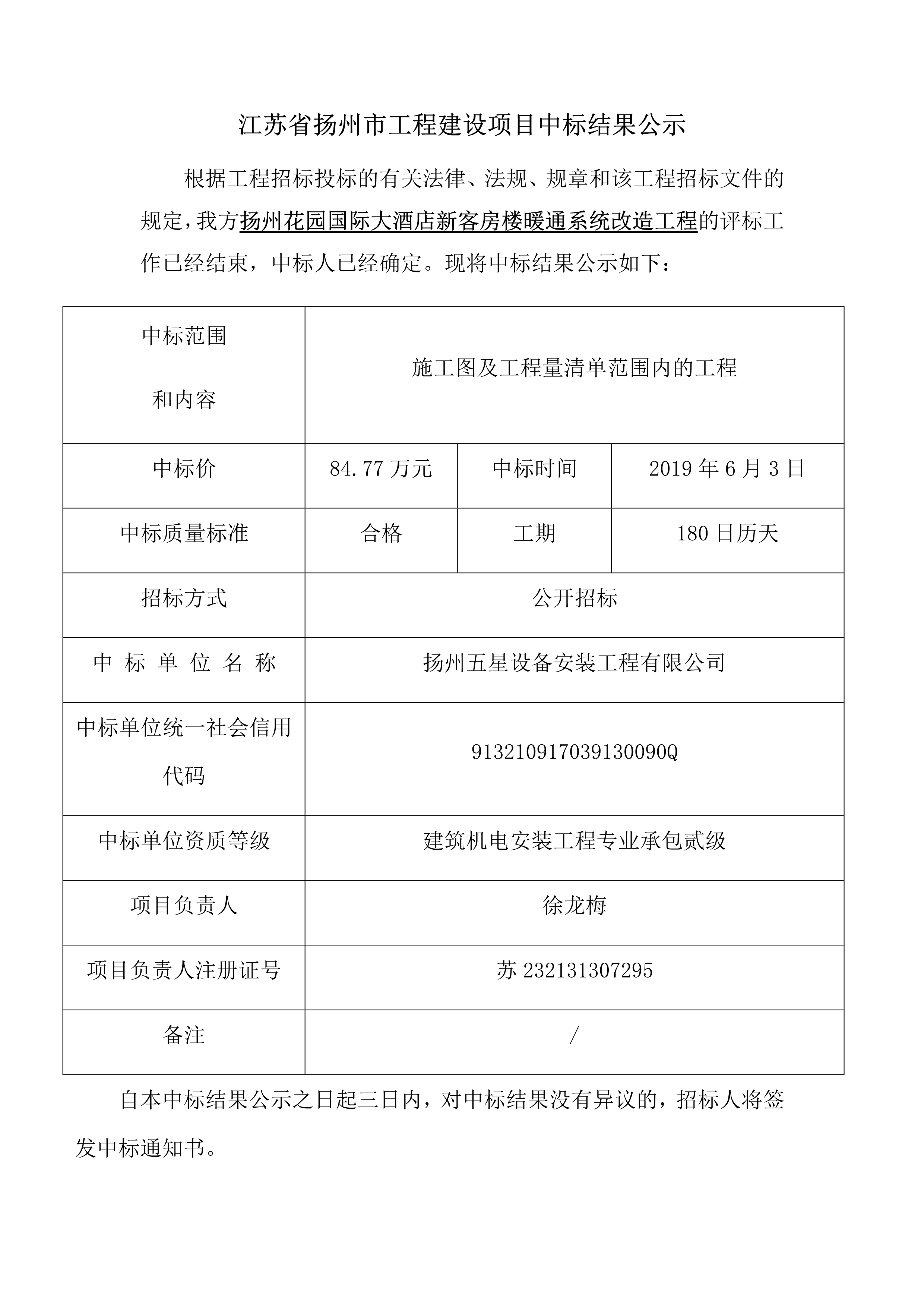 江蘇省揚(yáng)州市工程建設(shè)項(xiàng)目中標(biāo)結(jié)果公示