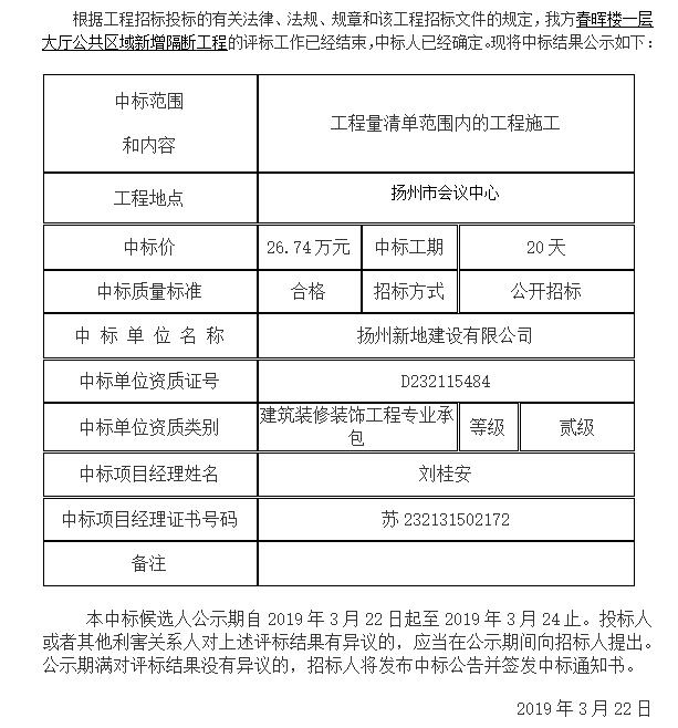 省揚州市建設(shè)項目中標(biāo)結(jié)果公示