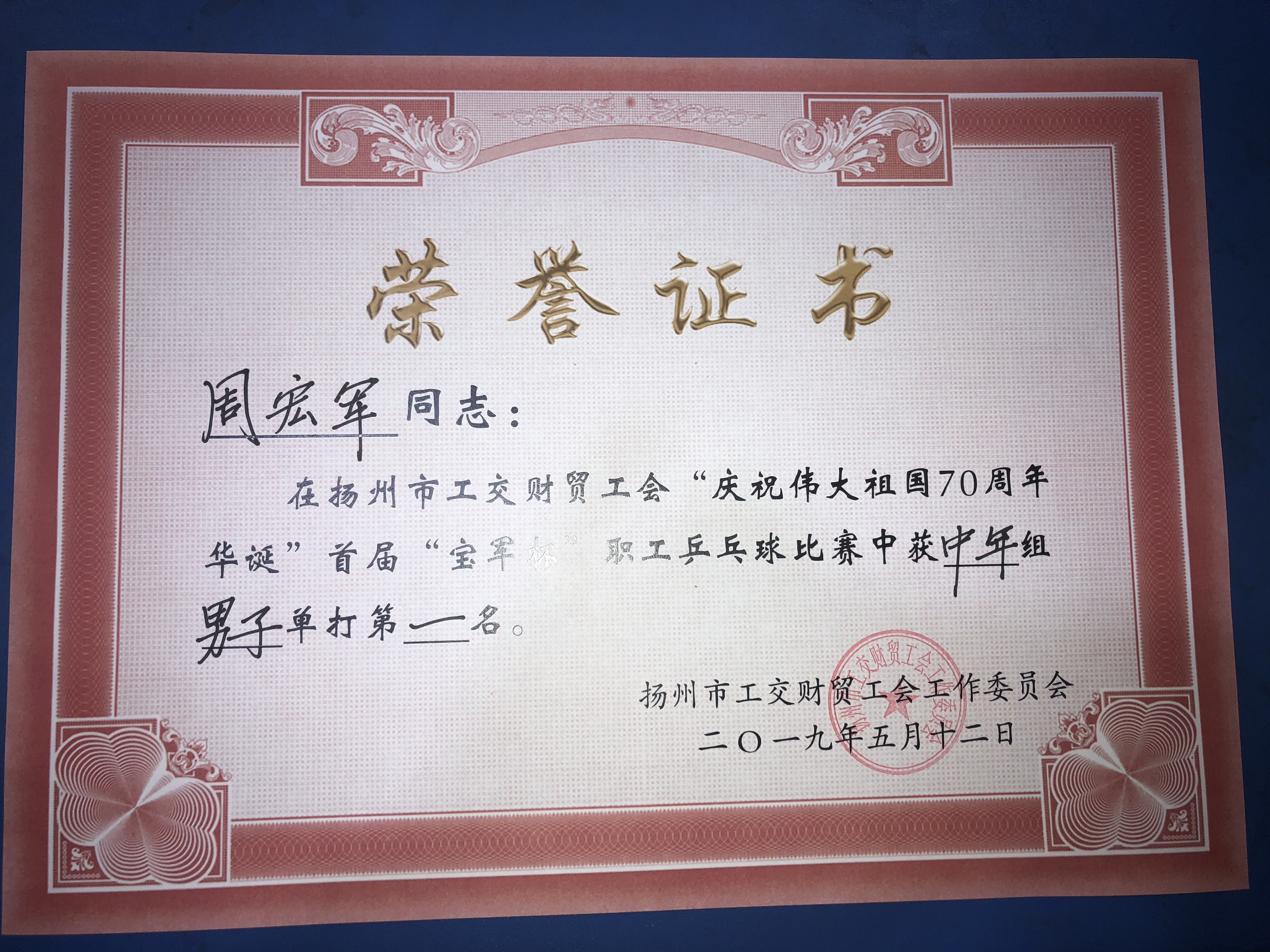 為慶祝新中國成立70周年,豐富職工的文體生活,5月12日,揚子江集團選拔優(yōu)秀選手組隊參加市公交財貿工會舉辦的“慶祝偉大祖國70周年華誕”首屆“寶軍杯”職工乒乓球比賽。 此次比賽采用單循環(huán)、11分制賽制,分設青年組男子單打、青年組女子單打、中年組男子單打和中年組女子單打四個項目。經過一天的激烈對抗,最終代表集團參賽的揚州商城周宏軍奪得中年組男子單打第一名,西園飯店邵堂獲得中年組男子單打第三名,珍園實業(yè)公司劉磊獲得青年組男子單打第三名。周宏軍也將代表市公交財貿工會參加市第十三屆運動會。(集團黨辦 沈揚) |