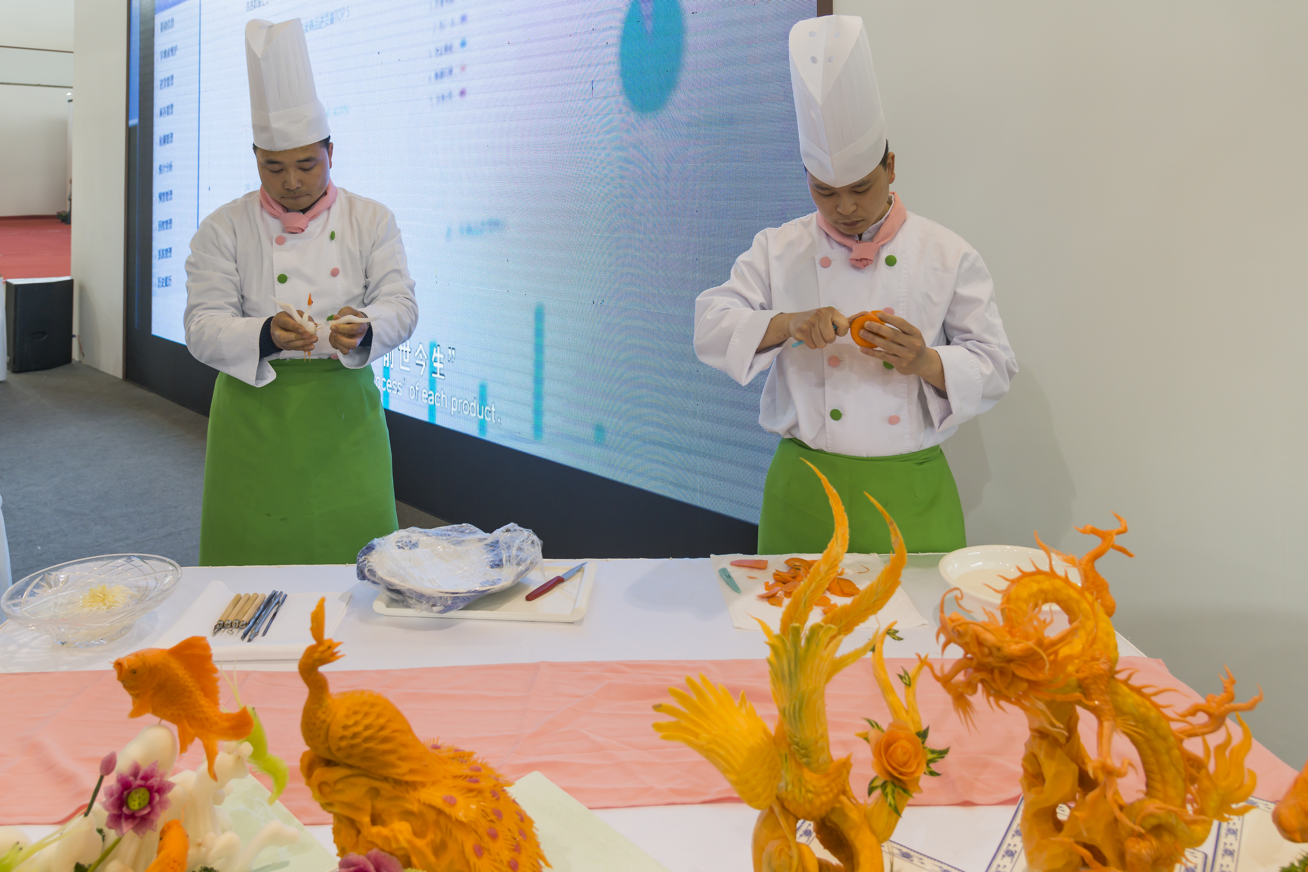 其中,手工果蔬雕刻、揚(yáng)州炒飯、面點(diǎn)制作展臺現(xiàn)場人頭攢動,市民消費(fèi)者紛紛前來駐足觀看、品嘗,精彩的刀工和地道的口味讓欣賞者和品嘗者不停點(diǎn)贊,拍照發(fā)朋友圈宣傳。
