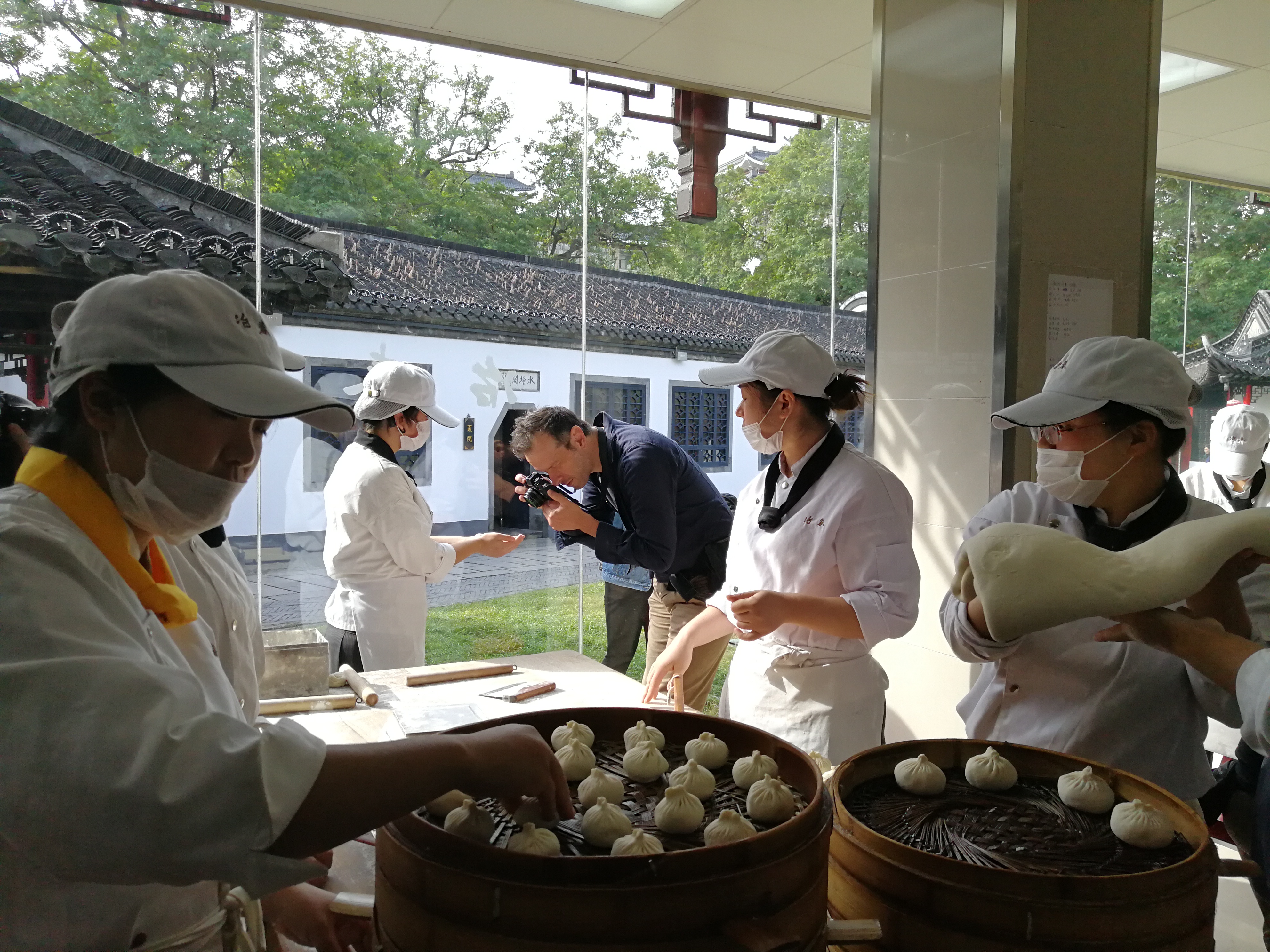 10月19日上午,“SHOW JIANGSU”中外媒體攝影團(tuán)來到冶春御馬頭店攝影采風(fēng)。“SHOW JIANGSU”中外媒體攝影采風(fēng)行系列活動(dòng)由江蘇省人民政府新聞辦公室和新華社新聞信息中心共同主辦,活動(dòng)聚焦“江蘇改革開放40年來的變遷”,透過中外媒體記者和知名攝影師的鏡頭,展現(xiàn)江蘇美麗的自然風(fēng)光、豐富的歷史遺存、醇厚的民俗風(fēng)情和多姿多彩的城市建設(shè)。 三丁包、蟹黃包、燙干絲、松子燒賣……采風(fēng)團(tuán)在冶春近距離體驗(yàn)了揚(yáng)州早茶的魅力,來自意大利的法新社攝影師Longbardi Nicola說冶春滿足了他對(duì)一頓豐富早餐的想象!采風(fēng)團(tuán)又來到冶春后廚,贊嘆于面點(diǎn)師傅技藝高深的同時(shí),攝影師紛紛拿起鏡頭拍攝。 體驗(yàn)揚(yáng)州的精致生活,定格冶春之美,中外媒體攝影師聚焦冶春早茶文化及面點(diǎn)技藝,通過鏡頭展現(xiàn)了冶春的文化魅力,冶春形象也得到又一次傳播升級(jí)。(冶春餐飲 王美) |